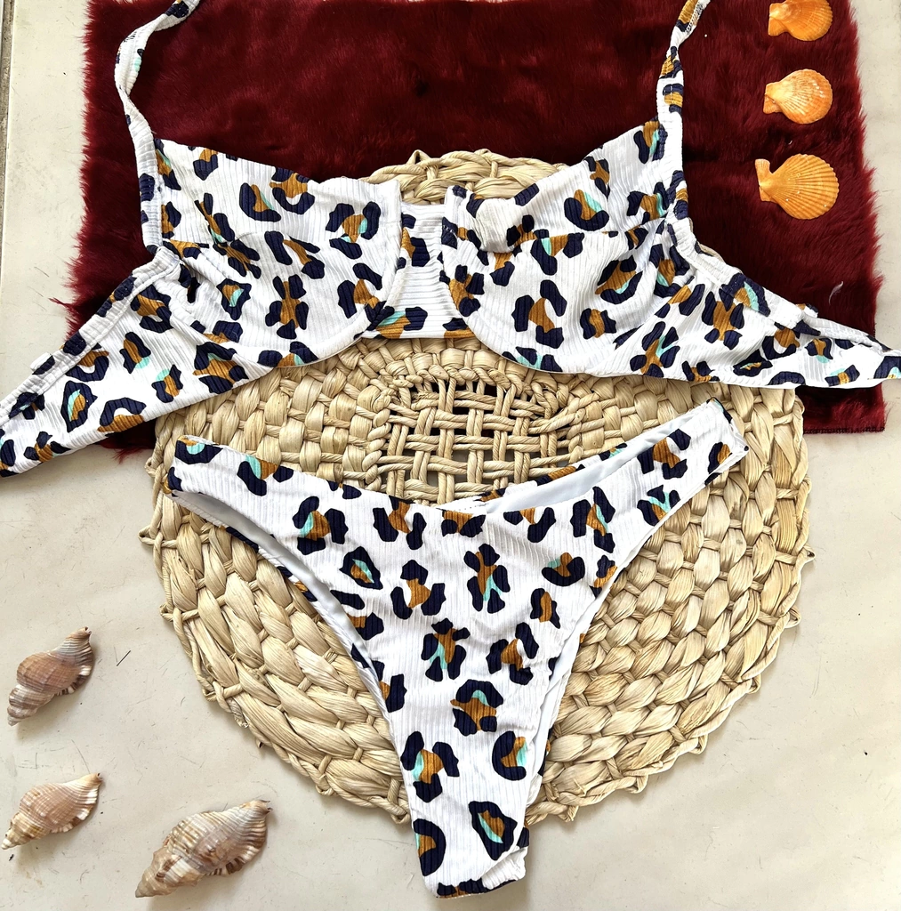Onça Branca e Dourada Calcinha Asa Delta + Top Meia Taça
